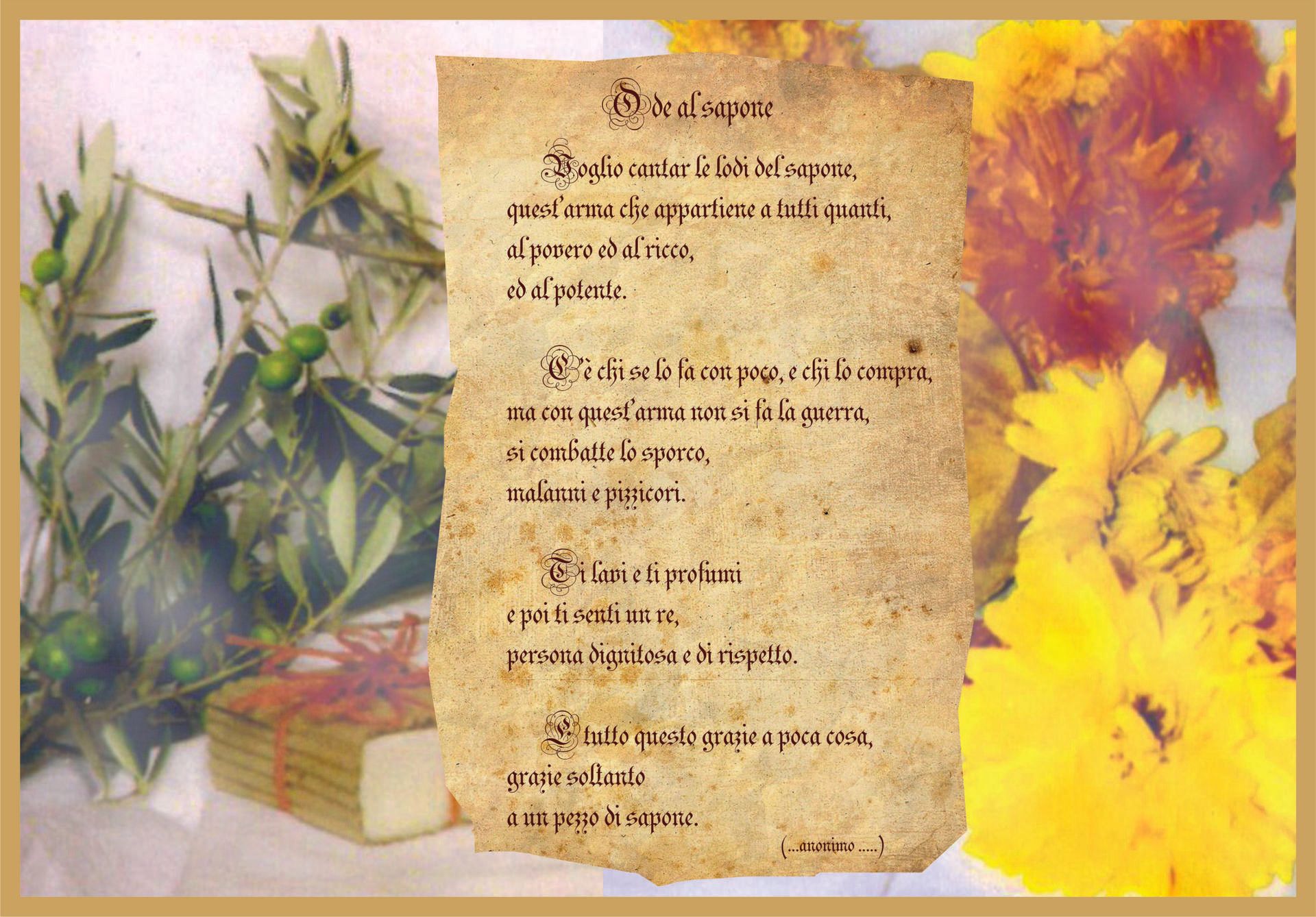un sonetto di autore anonimo intitolato "Ode al sapone" perchè, pur con un tono leggero e giocoso, sottolinea l'importanza che ha sempre avuto l'uso del sapone per la salute e